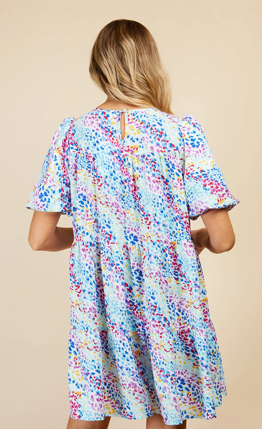 Pretty puff sleeves, technicolour animal print and a super-cute tiered hem – that’s what you call a dopamine dress. With a loose smock silhouette, it’s made to throw on and go. Style with trainers, sandals or strappy heels depending on the occasion.
