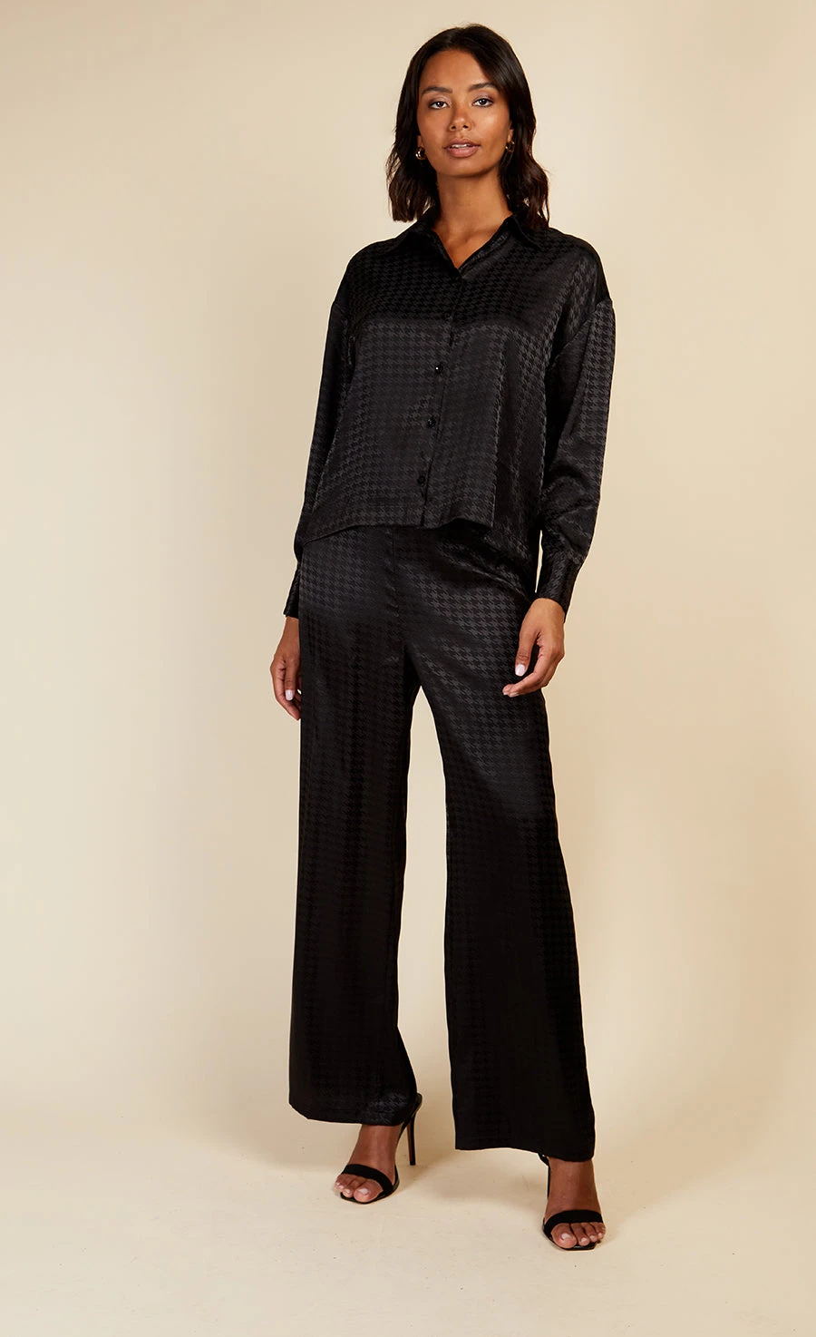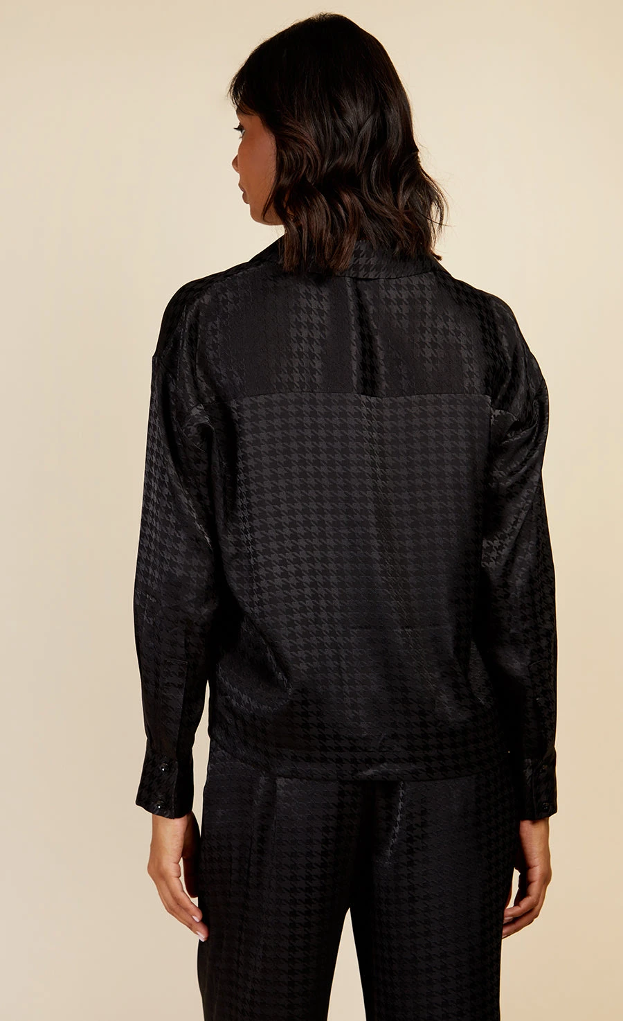 Our houndstooth jacquard shirt is high fashion, minimal effort, featuring a relaxed fit and summary detail. Style with our matching trousers and add a trainer or heel depending on the occasion. Print placement may vary.
