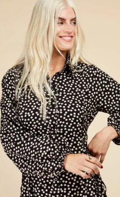 The perfect black dress doesn’t exi… Oh yes, it does, and it comes in the form of this seersucker midi. Cut in a classic shirt style with a waist-defining belt, sheer puff sleeves and a tiered hem give it an ultra-feminine feel. Style with ankle boots now and sandals come summer.Â