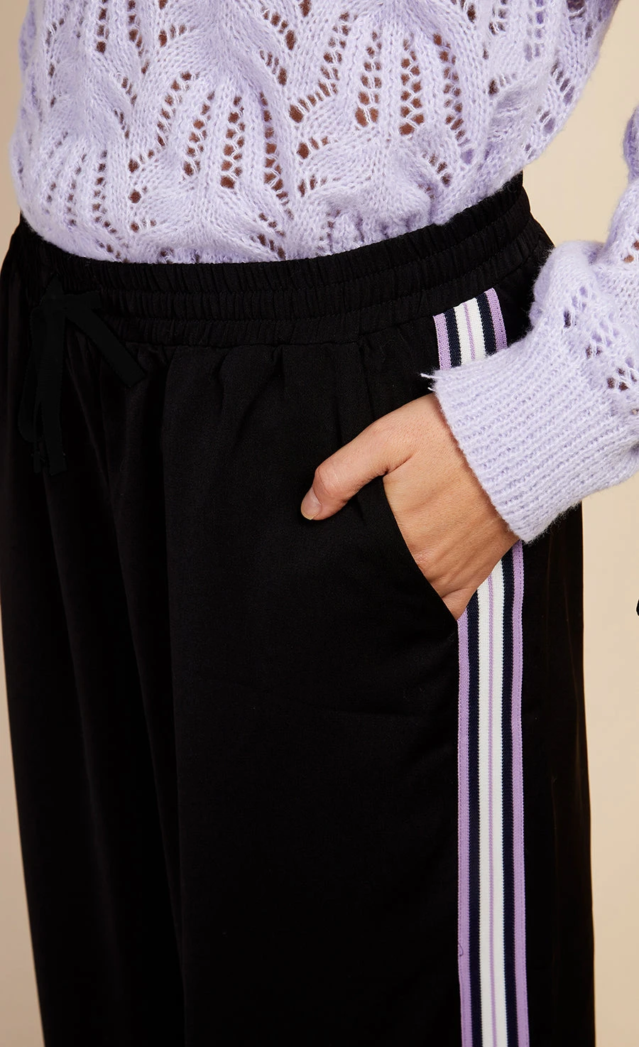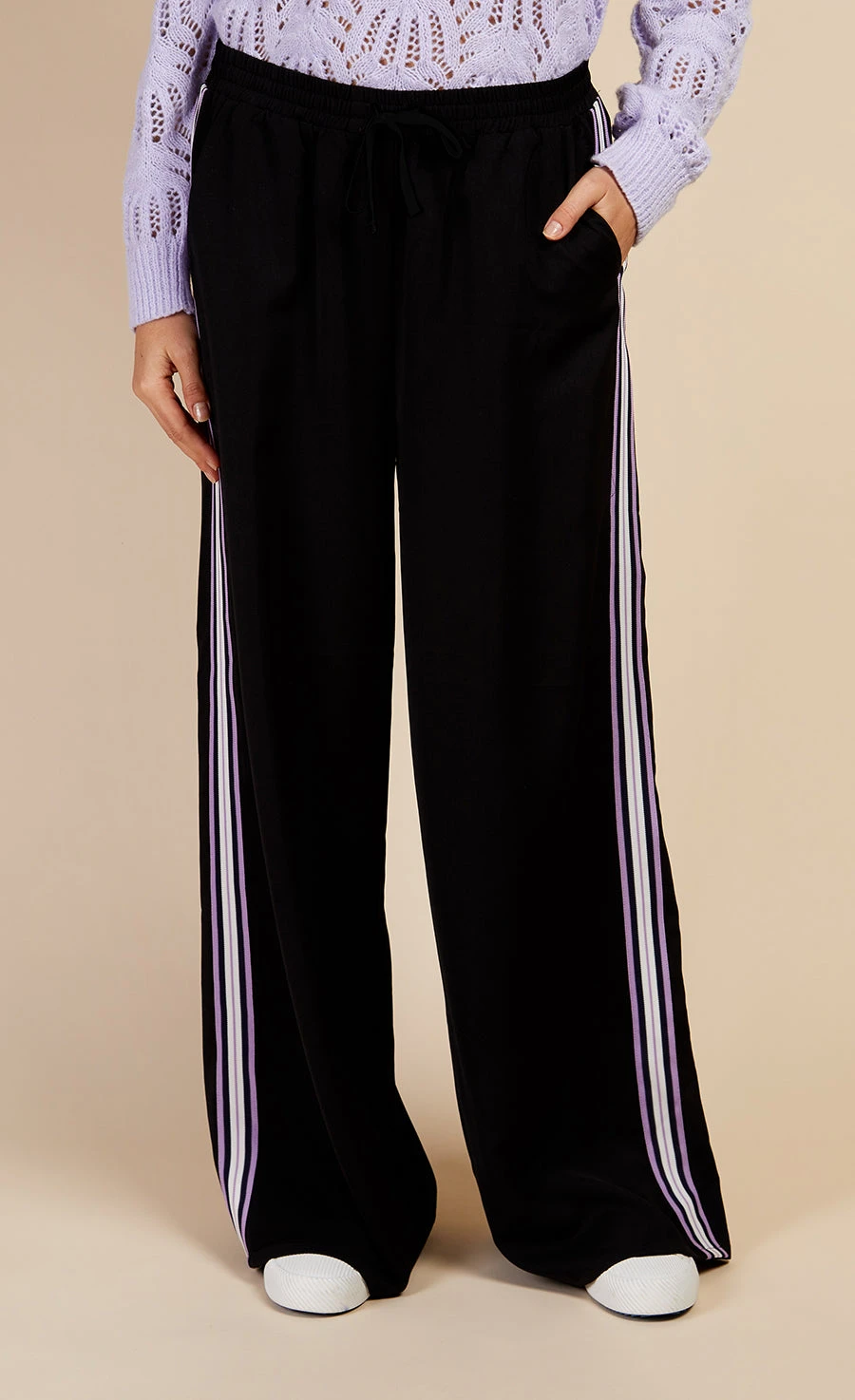 Sports luxe is trending and these trousers are a new season wardrobe essential. Designed with lilac and white trim, adjustable tie-waist and a relaxed wide leg silhouette. Style with a chunky knit or bodysuit and trainers for the ultimate in off-duty chic.
