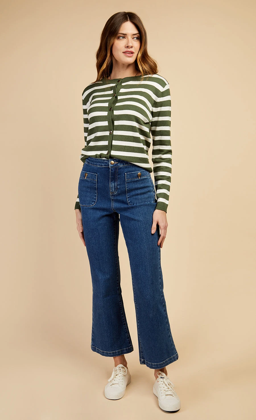 Tick off one of this seasons most popular trends with our 70’s style denim jeans! Complete with patch pockets and kick flare hem, add a platform boot and printed shirt for maximum impact!