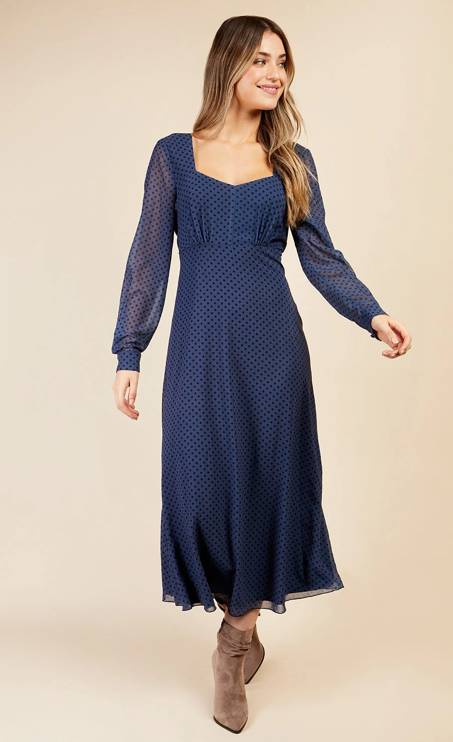 The sweetheart midi that’s giving us all of the feels, a feminine sweetheart bust and fluid midi skirt is perfectly complimented with romantic blouson sleeves. Designed in an all-over polka dot print for a on-trend twist on a classic silhouette.