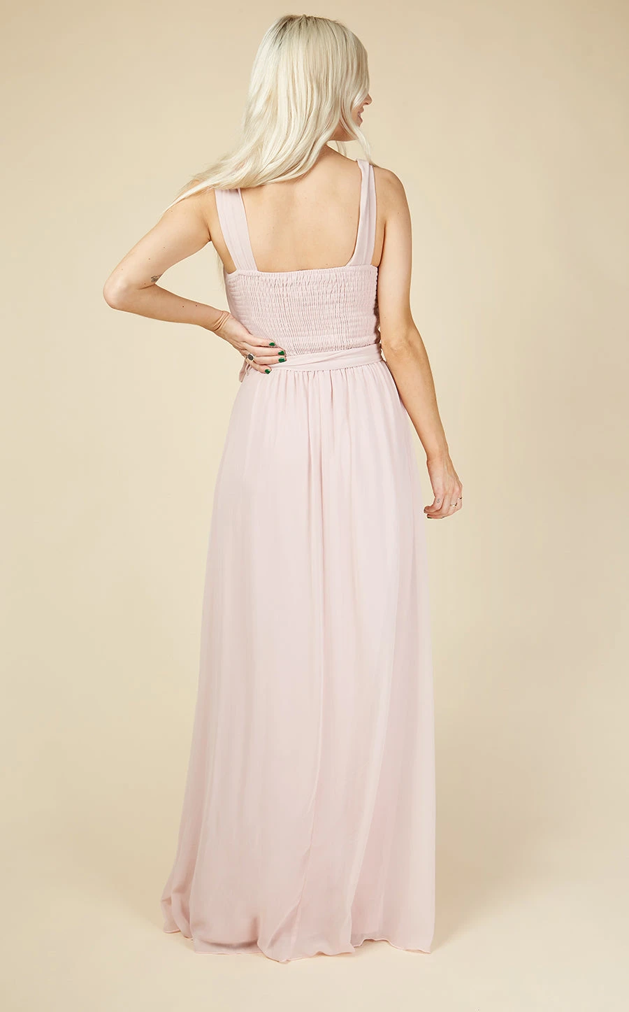 Our soft pink dress is an elegant and stunning choice for any bridesmaid. It’s made from chiffon and features sheer straps and a satin sash at the waist. There’s no denying it will instantly make you feel incredible.