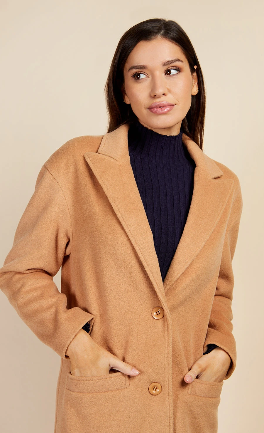 Oversized, single-breasted, wool blend coat in a camel hue. Featuring lapel collar, summary closure and pockets at front. Relaxed fit.