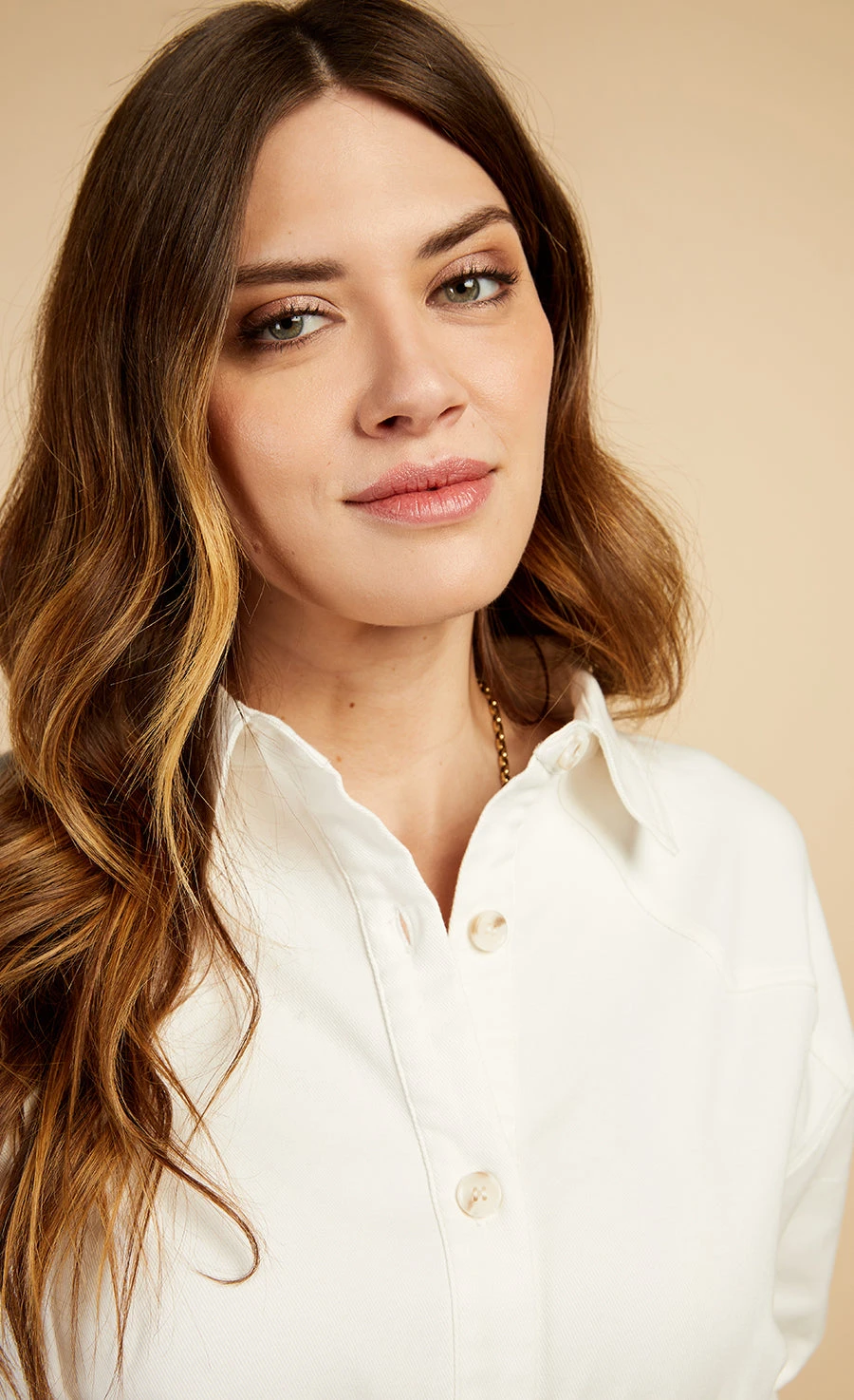 Tick off the western trend in this denim shirt. Crafted from a soft denim in a cream hue, this shirt embraces a relaxed, oversized silhouette while western details provide a on-trend twist on a classic. Whether paired with jeans for a double denim ensemble or layered over a dress, this one’s a new season wardrobe winner!
