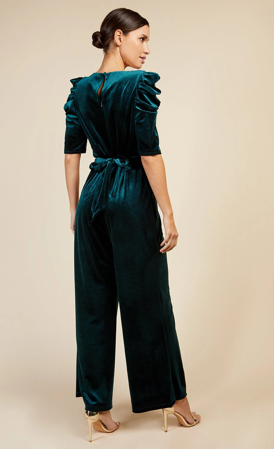 Crafted in a sumptuous green velvet, this jumpsuit is a party season showstopper. Statement puff sleeves, cross-over tie-waist detail and wide leg trousers will ensure all eyes are on you – simply add a clutch and strappy heels.