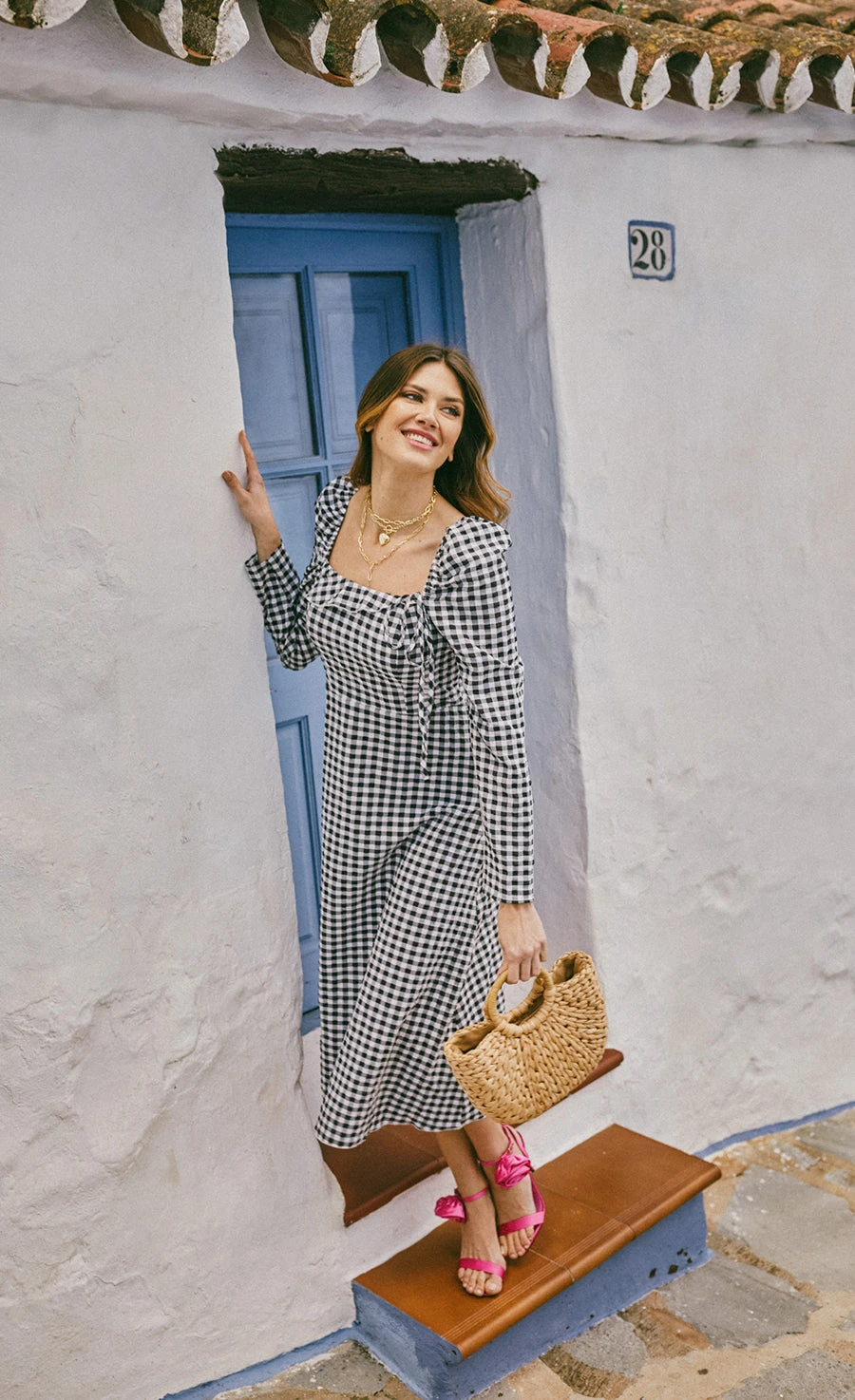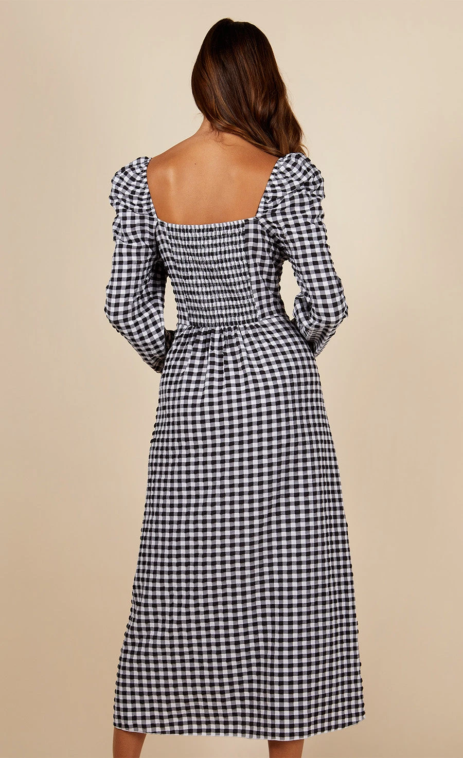 Timeless gingham is given an on-trend twist with a square neckline featuring asymmetric frill and tie detail paired with a classically feminine silhouette. Style with ankle boots or trainers by day and dress up with a heel by night. Print placement may vary.