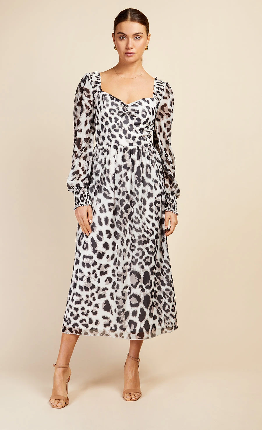 Unleash your wild side with this stunning piece featuring a sultry sweetheart neckline and bold leopard print. The midi length strikes the perfect balance between chic and playful, making it ideal for any occasion.Â