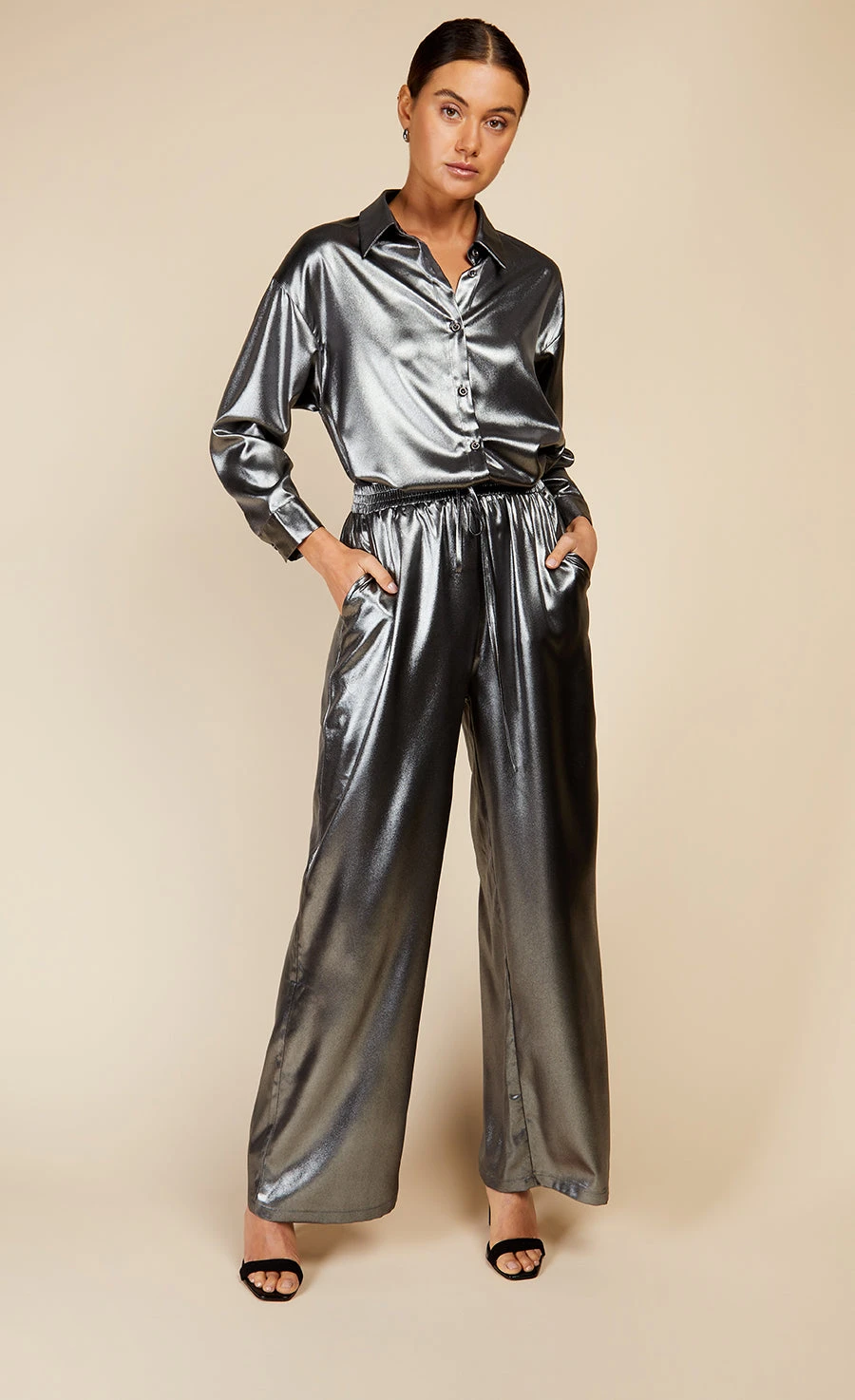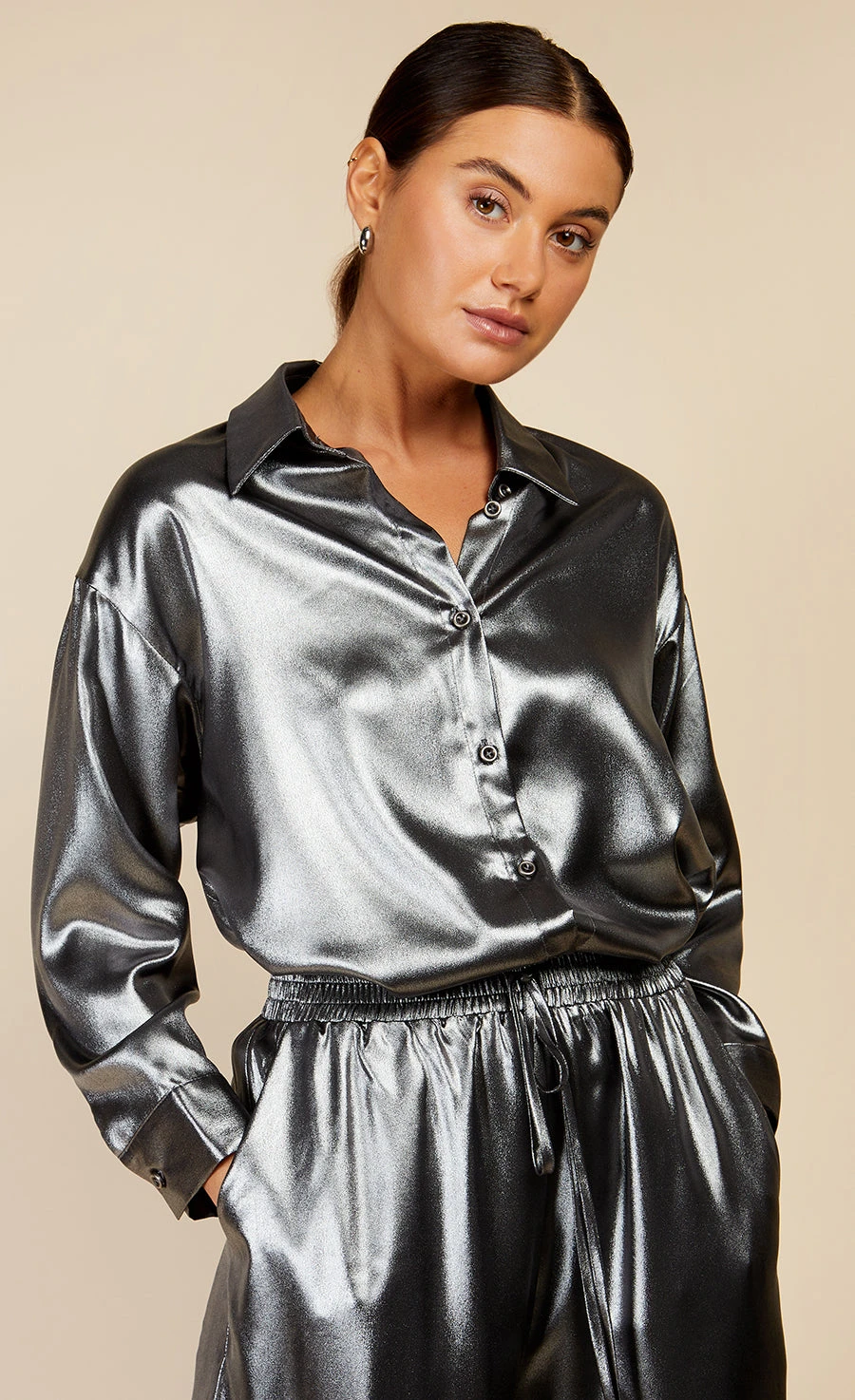 A sparkling take on the humble shirt, our metallic satin shirt is the perfect piece to upgrade your new season wardrobe. Dress it down with skinny jeans and a boot or go for full-on glam with our matching metallic trousers!