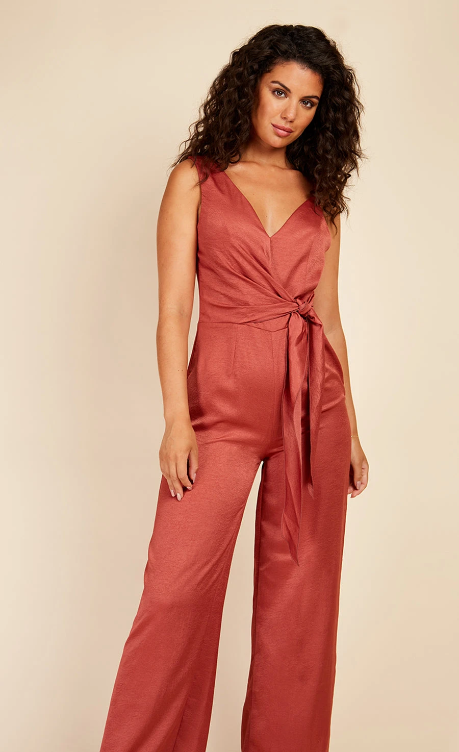 POV: you’ve got five minutes to get ready but need to look amazing. Enter our effortless jumpsuit. Cut to flatter, it features a V-neck wrap front, waist-defining tie and wide legs. Add in an asymmetric neckline for compliments guaranteed.Â