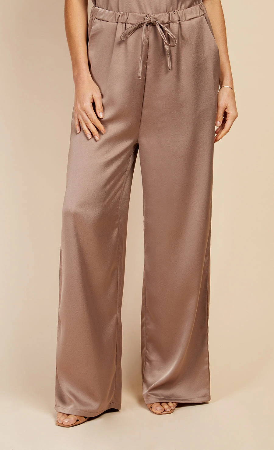 Little Mistress Stone Satin Trousers By Vogue Williams