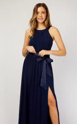 Little Mistress Luanna Navy Embellished One-Shoulder Maxi Dress